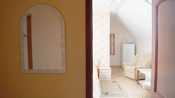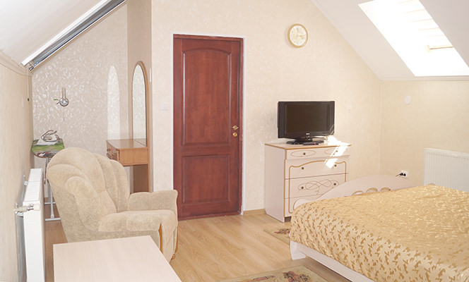 Площадь номера - 19 м2 кв.м. 1 осн. место. Мебель: вешалка, зеркало, кровать односпальная, прикроватная тумбочка, шкаф-купе. Оборудование: набор посуды, телевизор, холодильник, чайный набор посуды, электрочайник. Санузел: с душевой кабиной, туалетные принадлежности. Сервис: смена полотенец, смена постельного белья, уборка номера.