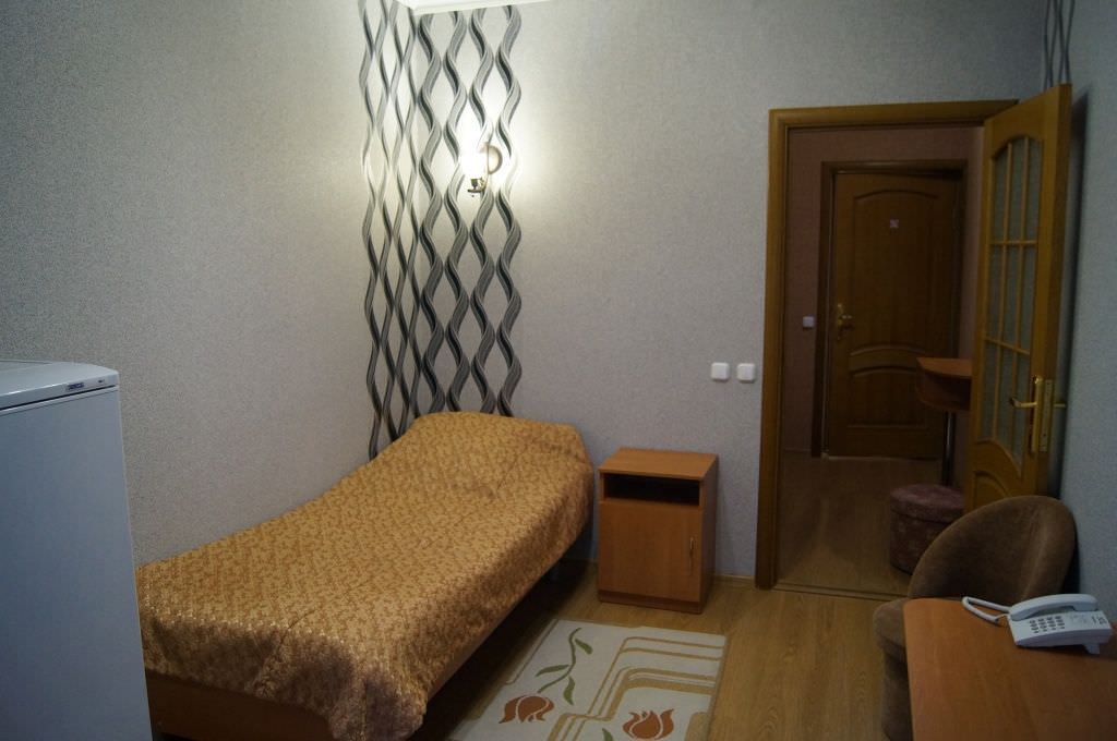 Площадь номера - 17 кв.м. 1 осн. место. 1 доп. место. Балкон. Мебель: вешалка, зеркало, кровать односпальная, прикроватная тумбочка, стол, стул, шкаф-купе. Оборудование: набор посуды, телевизор, холодильник, чайный набор посуды, электрочайник. Санузел: с душевой кабиной, туалетные принадлежности. Сервис: смена полотенец, смена постельного белья, уборка номера.